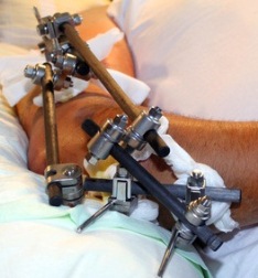 In vielen Fällen stellen sich Patienten dann - oft nach einem Aufschrei oder Abstrich des Hausarztes oder einer Beschwerde "wo kommen sie denn her ?" der Reha-Einrichtung - in der Klinik wieder vor. Nicht selten wird dann erneut nicht medizinisch präzise agiert sondern die Wunde oberflächlich gespült und ein Antibiotikum eingelegt. Die Keime arbeiten weiter, das Knochengewebe wird angegriffen, der Patient wird - aus unserer Sicht oft viel zu spät - in eine andere Klinik verlegt, man weiß nicht mehr weiter. |